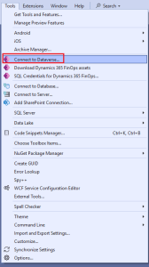 To install Docentric AX models to a UDE environment, you first need to connect to the environment through Visual Studio: