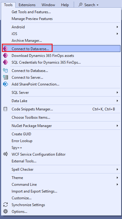- Click on Tools > Connect to Dataverse: