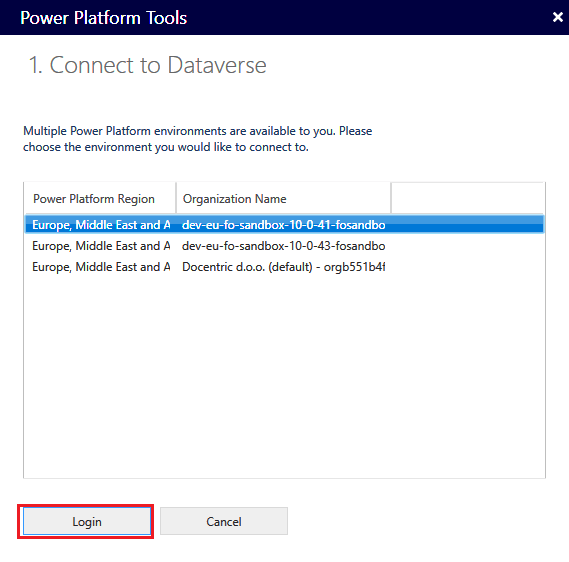 - Choose the environment you want to connect to: