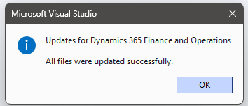- After restarting Visual Studio you should get an infobox message that all files were updated successfully: