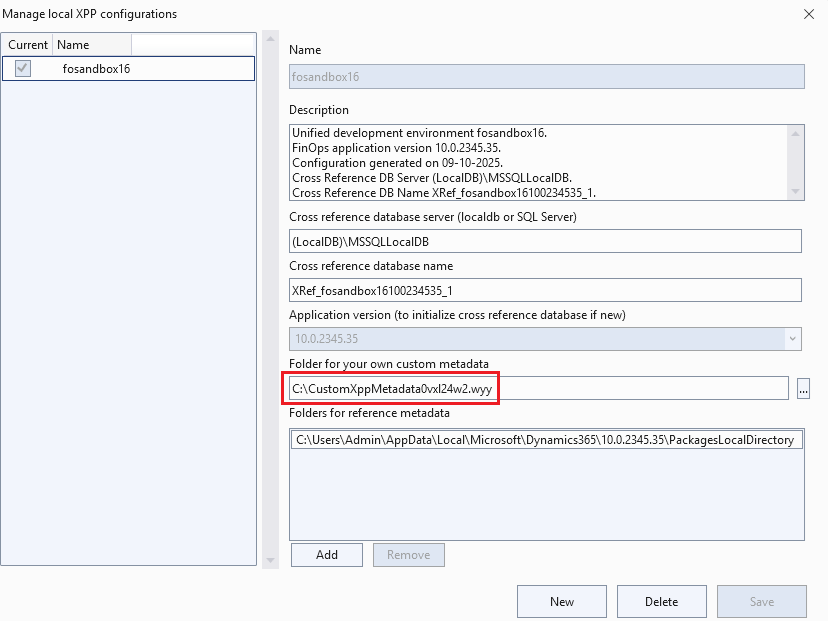 - Take a note of the Folders for reference metadata directory that is listed on this form, as that is the path of the PackagesLocalDirectory folder (where the D365FO assets were downloaded to):