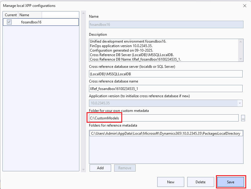 Now we need to configure the metadata to determine where we want to keep our custom models (including the Docentric AX models):