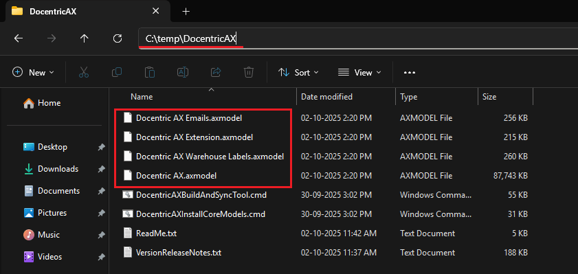 - For this example we're going to assume that you have extracted the Docentric AX models archive from the download center to the C:\temp directory: