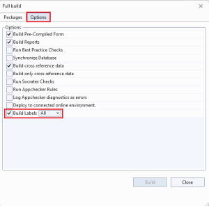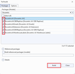 - Select all the Docentric AX models and click on Build (make sure that you have the Build Labels parameter checked, otherwise the labels won't work):