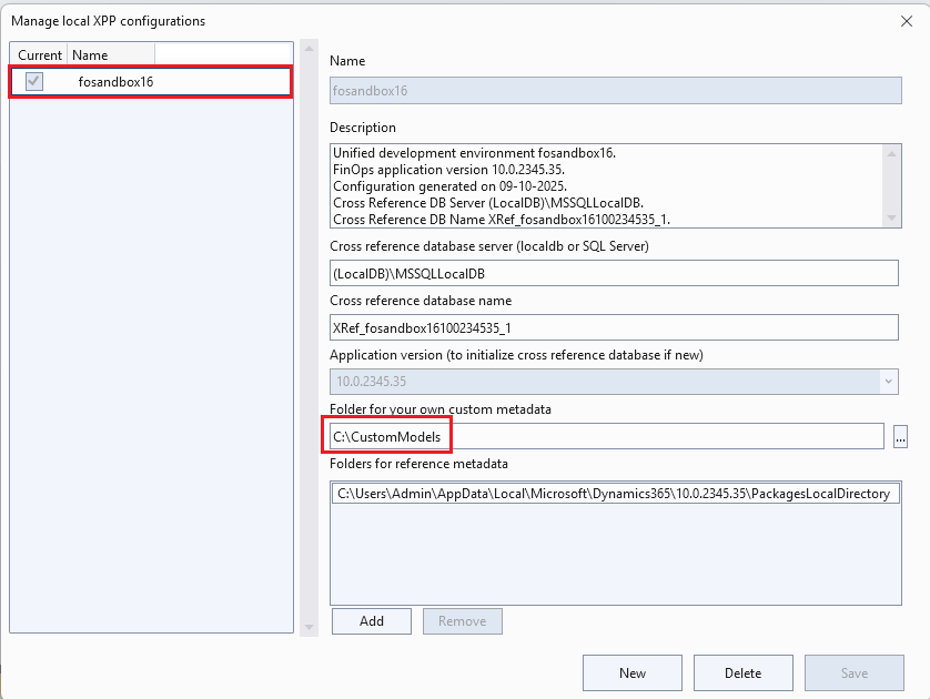 - Choose the environment you are connected to on the left, then check the custom metadata directory:
