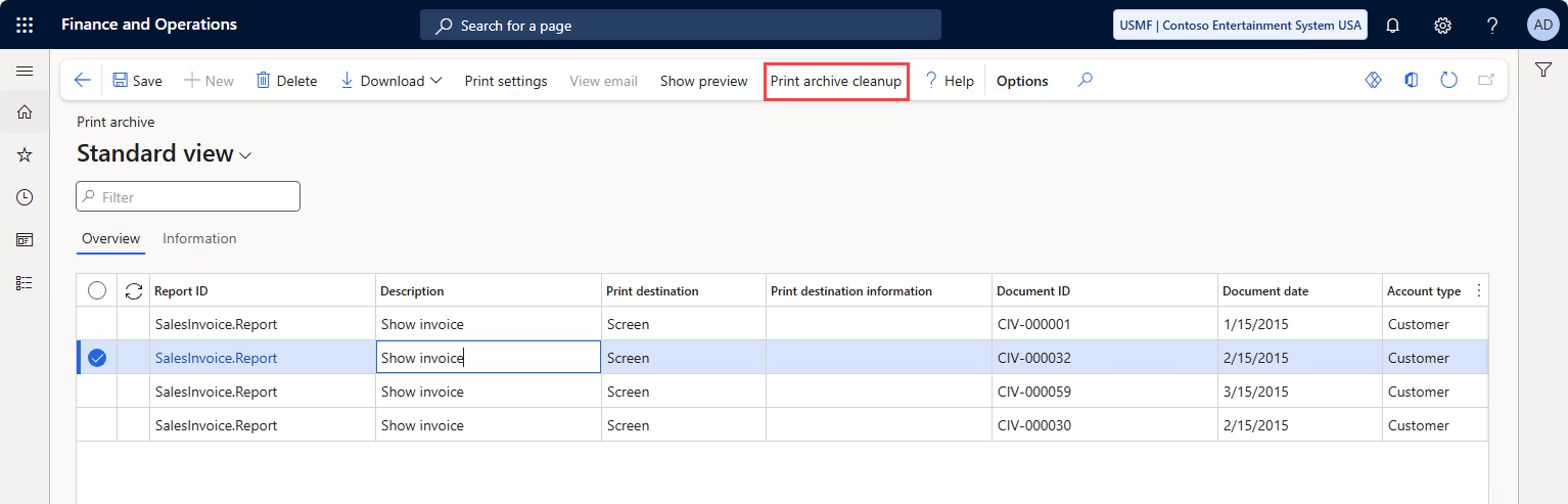 - (Available in v3.5.0) Print archive cleanup: Configure a Print archive clean-up job for deletion of the chosen Print archive table records and optional deletion of the corresponding archived report documents from their storage location (Azure Storage or SharePoint), based on the Document Type used for archiving. Learn more >>