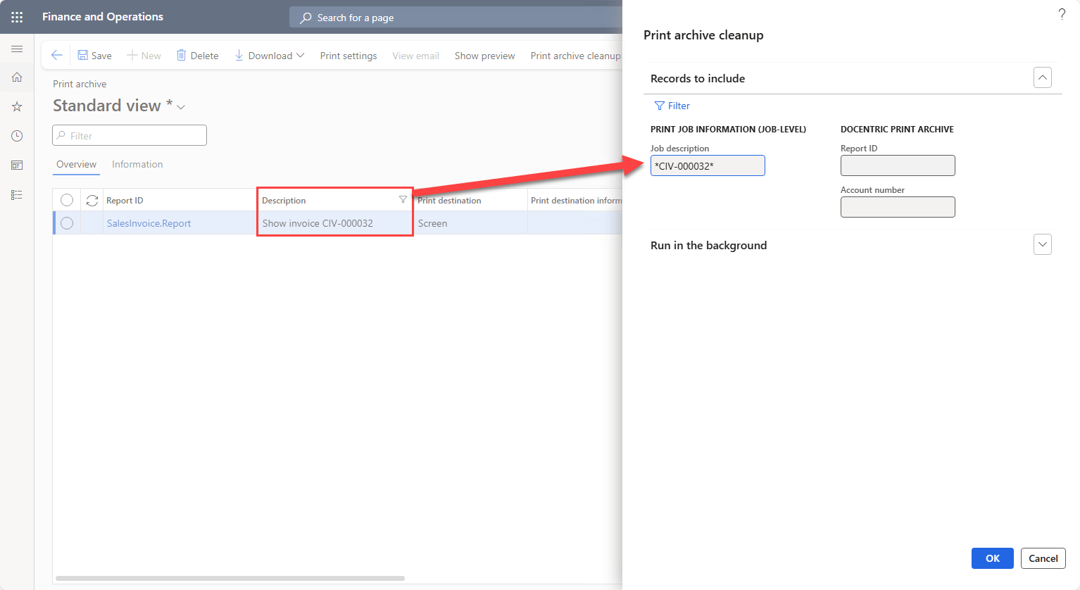 To help you manage it, we’ve added the Print archive cleanup job, which can delete old or unnecessary Print archive records either interactively or in batch.