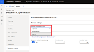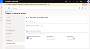 Open the Docentric AX parameters form and take a look on each of the tab pages.