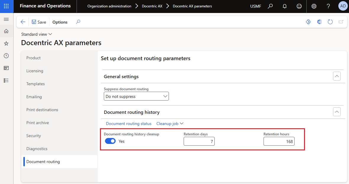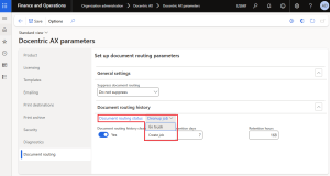 Document routing history cleanup: Turn this checkbox on if you want to apply document retention rules.