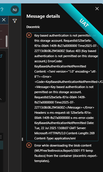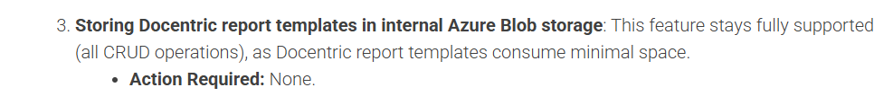 We are using the standard OOB (MS hosted) Azure blob storage to store our Docentric templates. Our Prod and UAT environments are identical in setup regarding this and Docentric version (3.4.8.5)