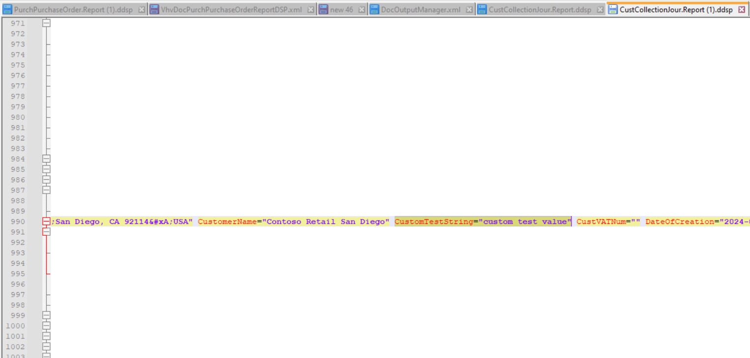 The class CustomDocCustCollectionJourReportDSP in the project has the following sample code: