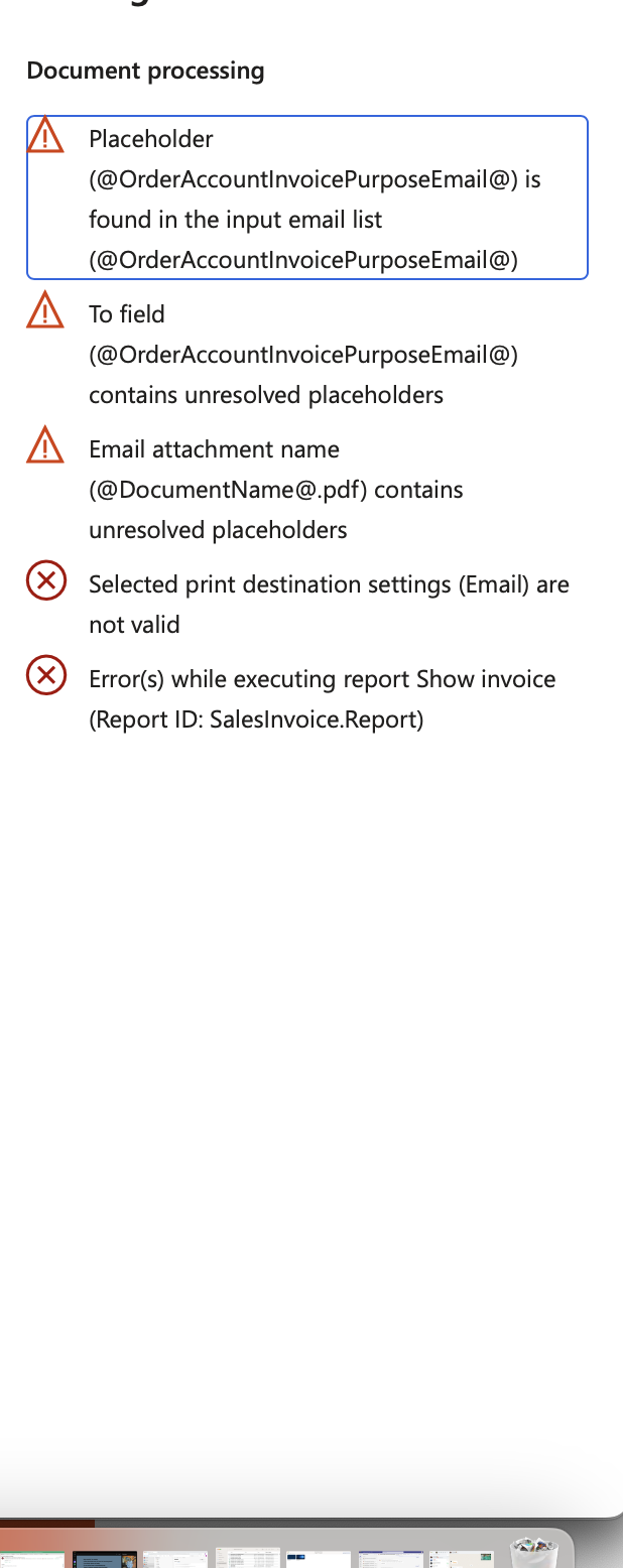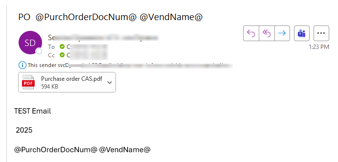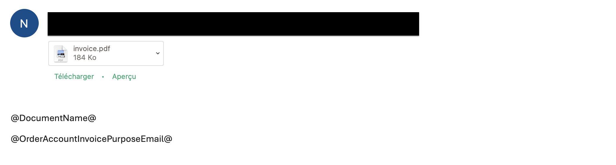 With the modified setup, please print the invoice that previously resulted in the error message. An eml file should download to the browser that you can open with Outlook. This allows you to verify the value of the placeholder in the body of the email.
