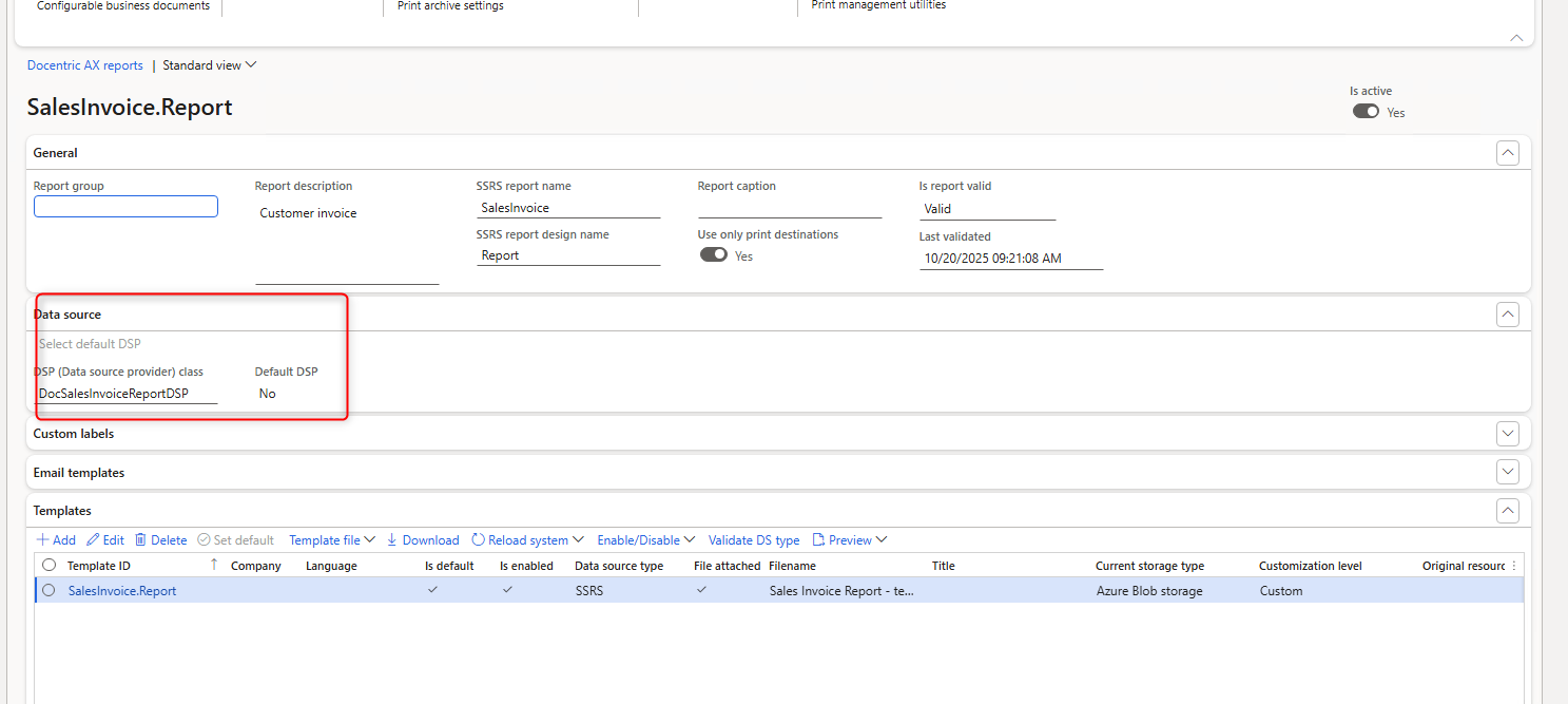 Also, could you share how your report is set up with Docentric? For example, which DSP class are you using there?