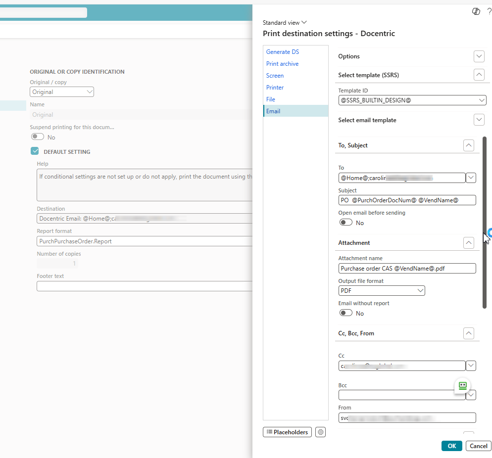 Sure, I am trying to setup Docentric Email- using print management for Purchase Order confirmation.