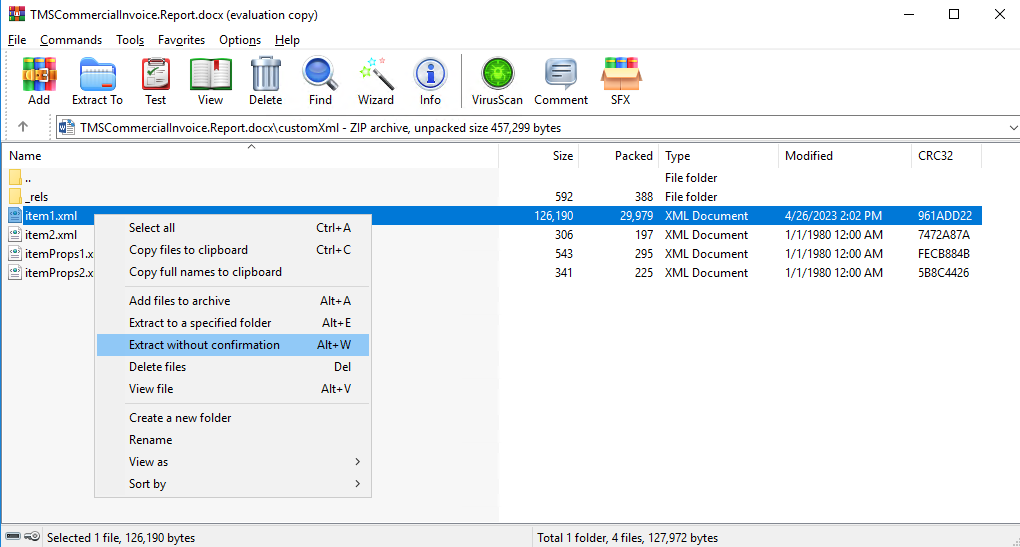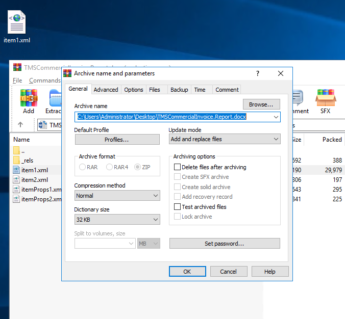 Drag and drop the item1.xml file back into the archive and confirm the dialog: