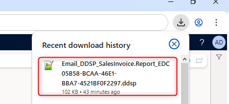 When you export a DDSP to design a template, the structure is saved as a file, downloaded through your browser, and then loaded into Docentric AX Designer. This is the design-time DDSP.