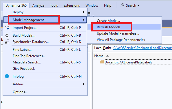 Errors on refreshing models or having references to the Docentric AX License Plate Labels model