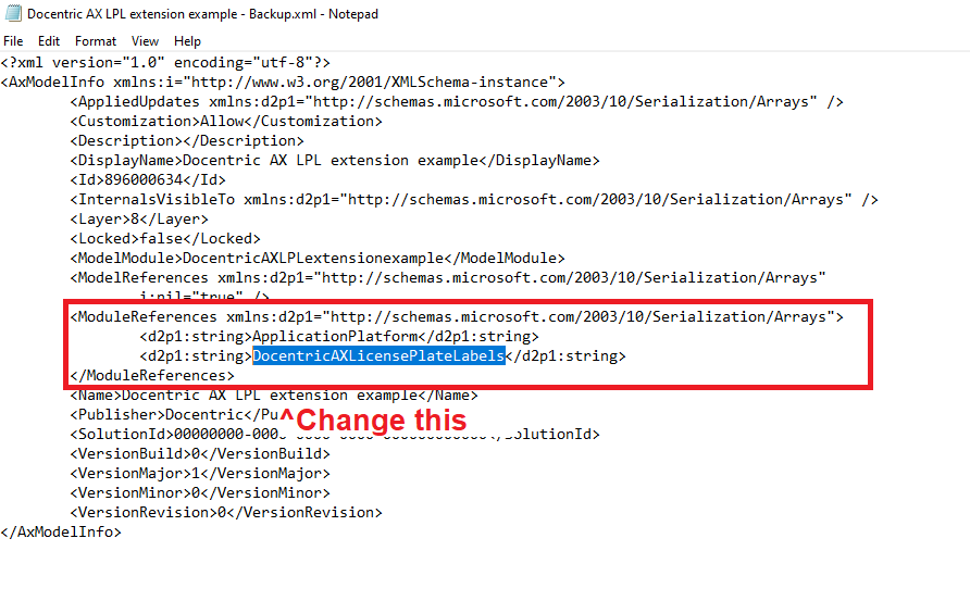 Module ‘DocentricAXLPLextensionexample’ has invalid