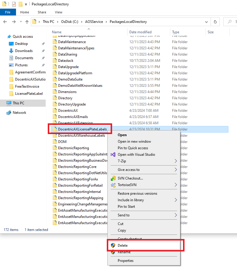 - It is recommended to also remove the obsolete Docentric AX License Plate Labels model, for this please follow the steps under the Duplicate metadata artifacts in this forum post.