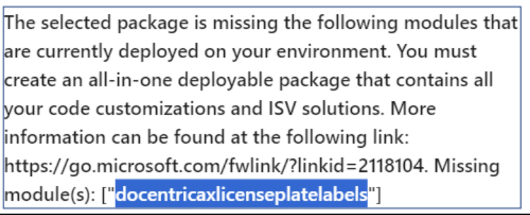 Deployable package missing the DocentricAxLicensePlateLabels module